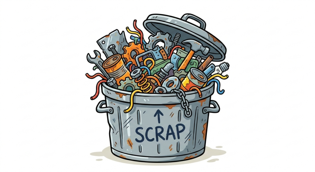 Responsible scrap disposal and sustainable recycling practices.
